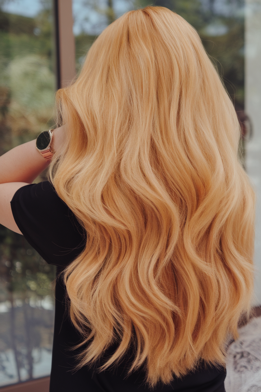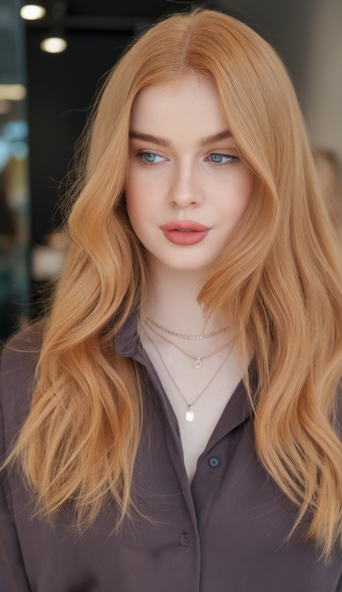 The color is boldly visible and skillfully blended into the luscious red-blonde shade with a golden copper flow; the hallmark of this tone is is a natural flow colored in soft waves. The color is applied evenly, resulting in a lively and full saturated look, Ideal for those wishing to try out warmer and more exciting color dyes while still being in the range for Summer Hair Colors for Blondes 2025. Anyone wishing to move away from cooler toned blondes into something more vibrant will be appreciative of this shift.