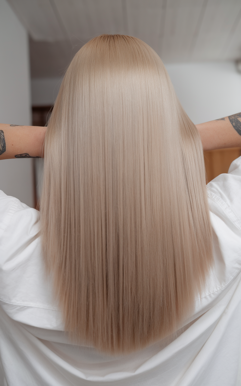#13 Icy Champagne Blonde with Sleek Precision Cut