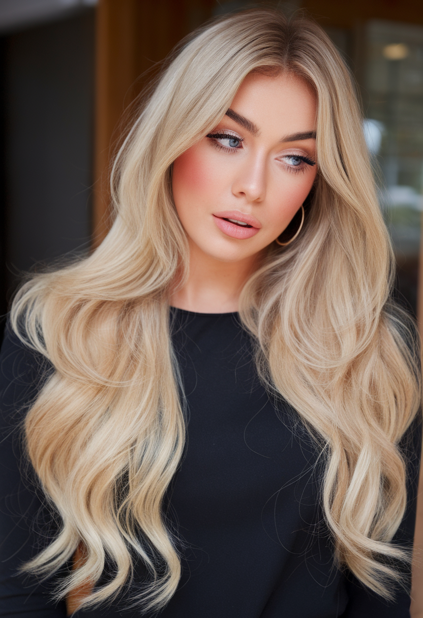 #15 Silky Long Blonde with Subtle Balayage Highlights