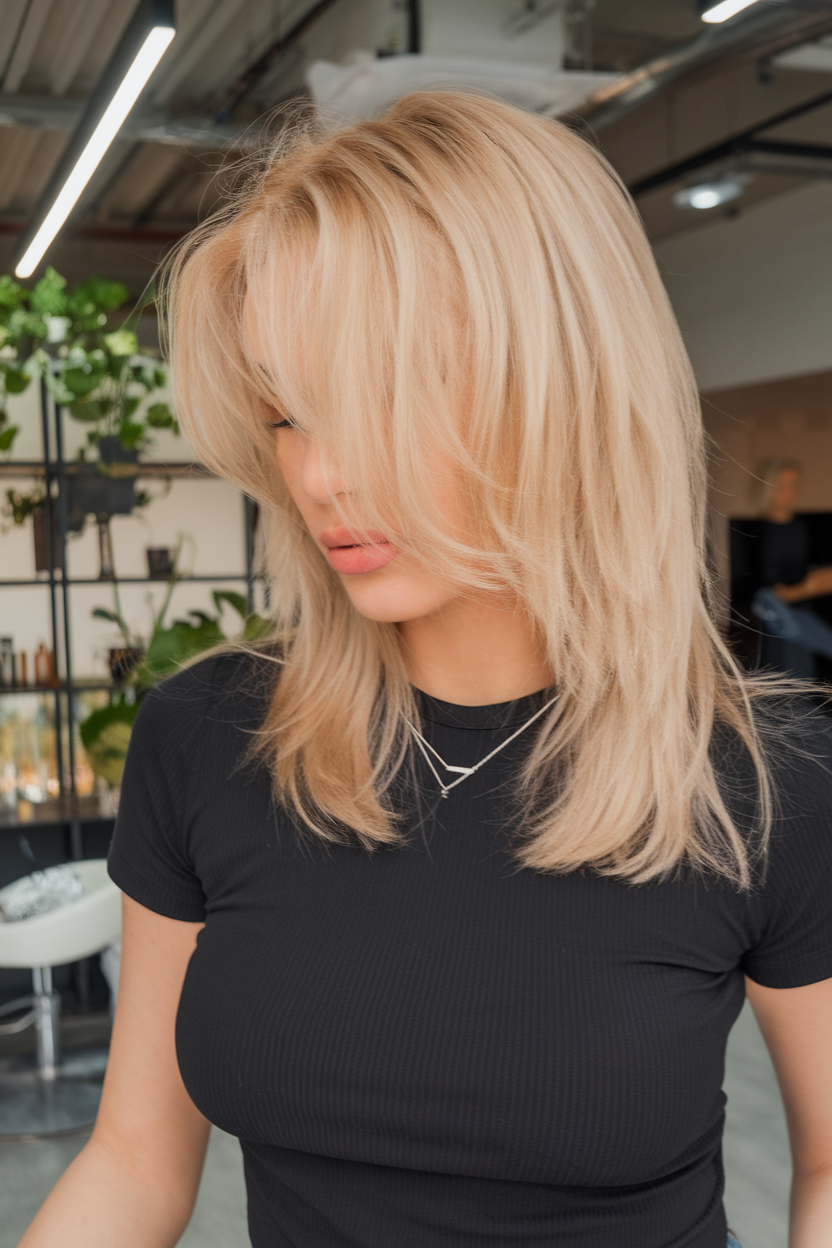 This style of blonde for 2025 becomes interesting with a blend of creamy soft color and long layers burnt on the edges. The combination of warm and cool shades is wrapped into one giving it a magical glow. This is ideal for day to night looks and works perfectly for anyone wanting a twist to the usual polished, playful modern feel.