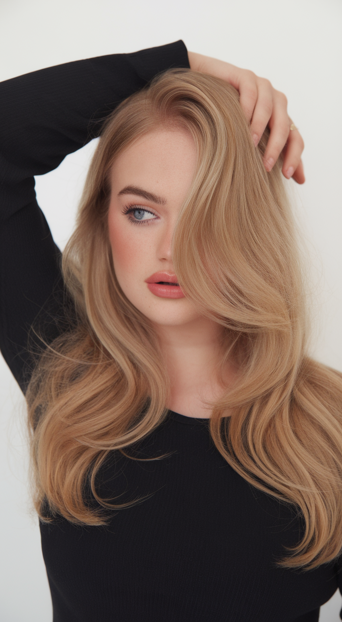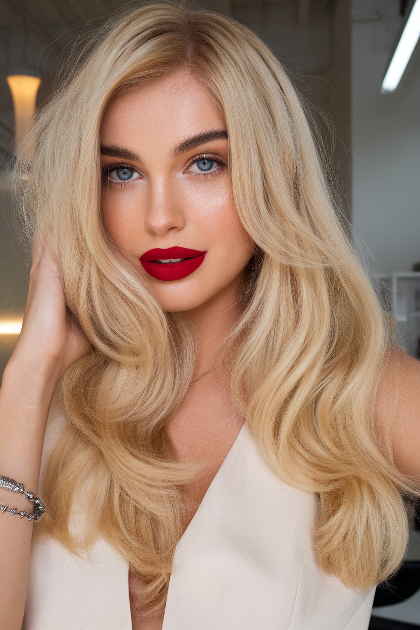 Ocean waves are accentuated in this hairstyle with a longer and fuller structure. The strands are undone and blended with subtle highlights and blonde tones, revealing sun kissed blonde hair. This minimalistic approach makes this hairstyle more appealing for hotter days, with soft heat and unbothered movement. The choice effectively opens up the face while shifting it more towards a classic look, undeniably on the list for Summer Hair Colors for Blondes 2025: Effortlessly Bright Looks Collection.