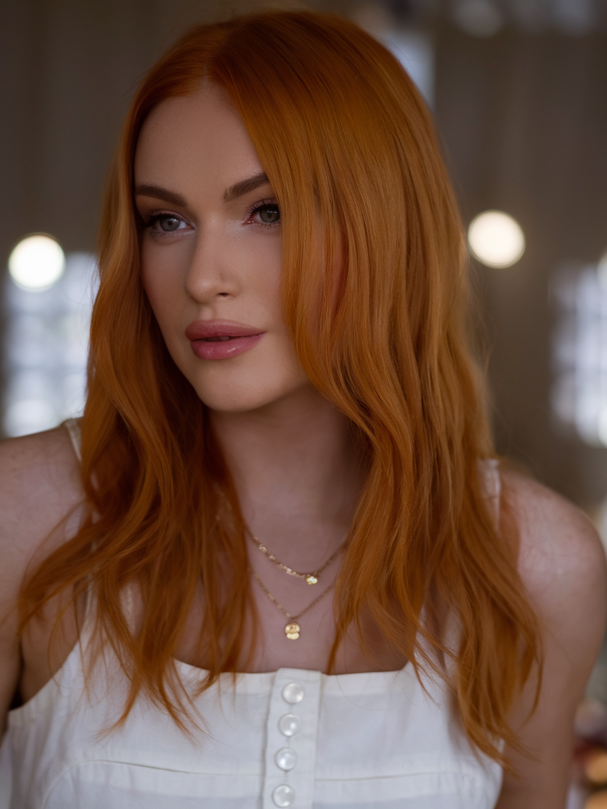 This soft and beautiful auburn shade is the perfect example of light-toned red hair for fall. The subtle, natural waves and the bright copper hues give this look a gentle and effortless appearance. Ideal for someone who prefers a more delicate, low-maintenance look, this style embodies warmth and sophistication. The rich shades of auburn blend beautifully with light copper tones, offering a polished yet approachable look for fall red hair 2024. This option is ideal for those who want a more understated, refined vibe for their seasonal hair change.