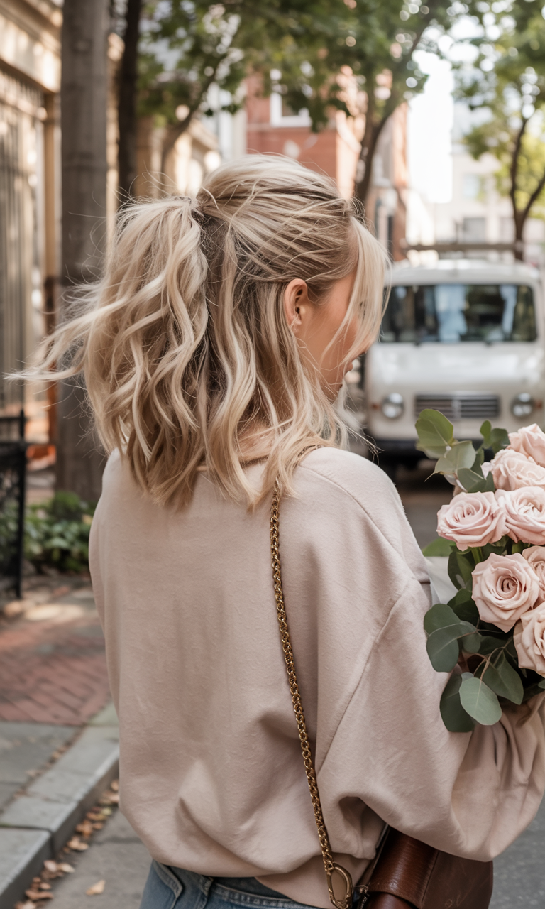 #25 Wavy half-up ponytail with volume