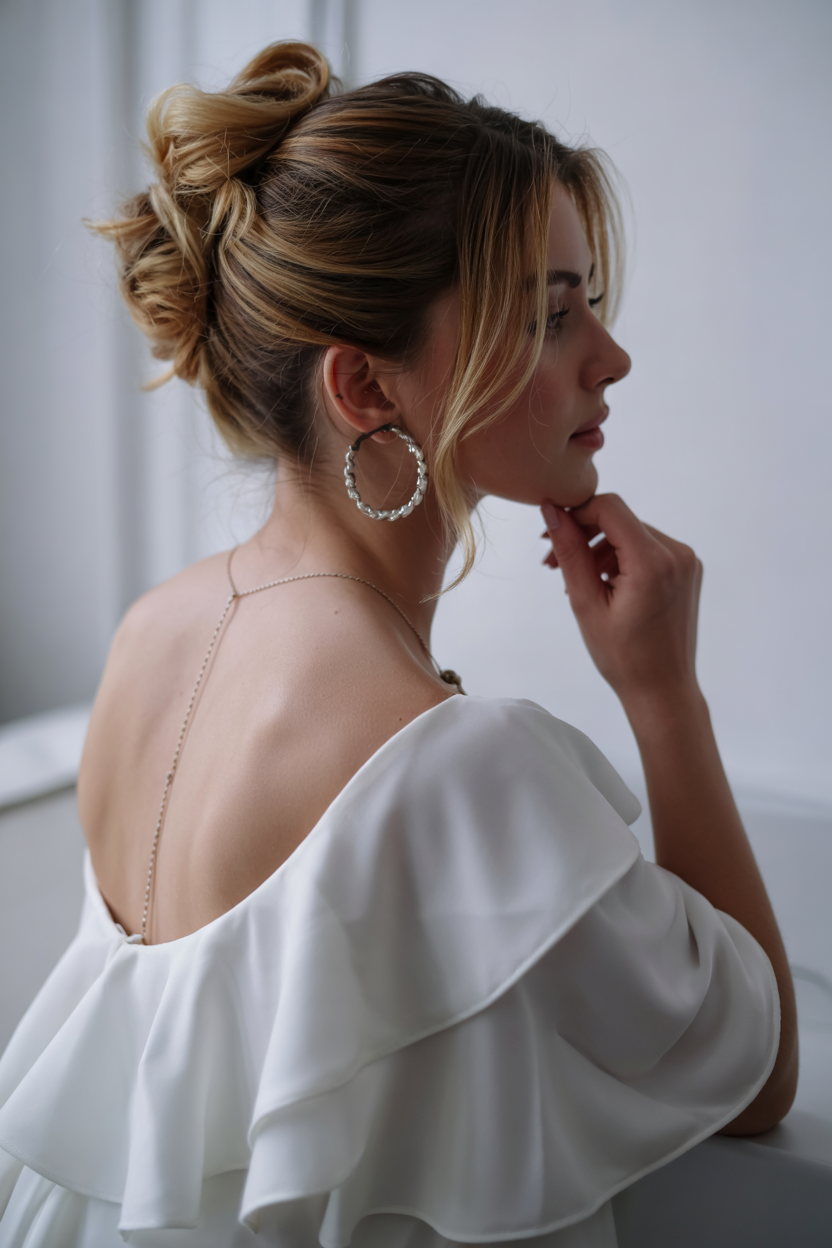 #24 Tousled Bun with Soft Face-Framing Strands