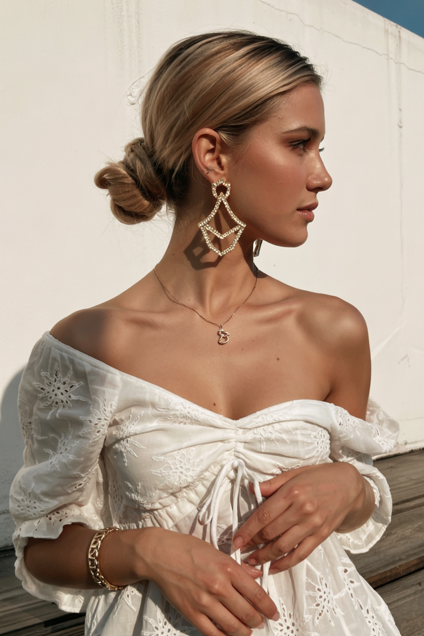 The bun exposes playful sides of blonde shoulder-length hair, which contrasts nicely with front layers that fall gently on either side. The soft waves and strategically placed shadows around the roots make this style both natural and elegant. This hairstyle is perfect for both the school day and the lazy weekend. This hairstyle presents beauty that matches everyday practicality while being ideal for ladies who follow today’s trends.