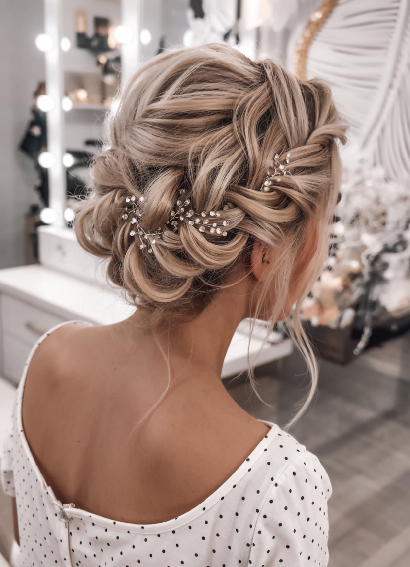 #5 Embellished Updo with Textured Braids