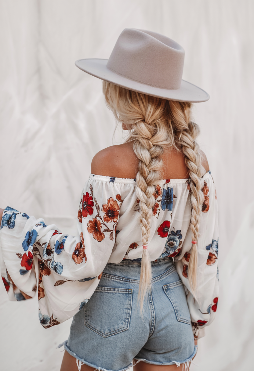 #3 Twin Braids Under a Hat