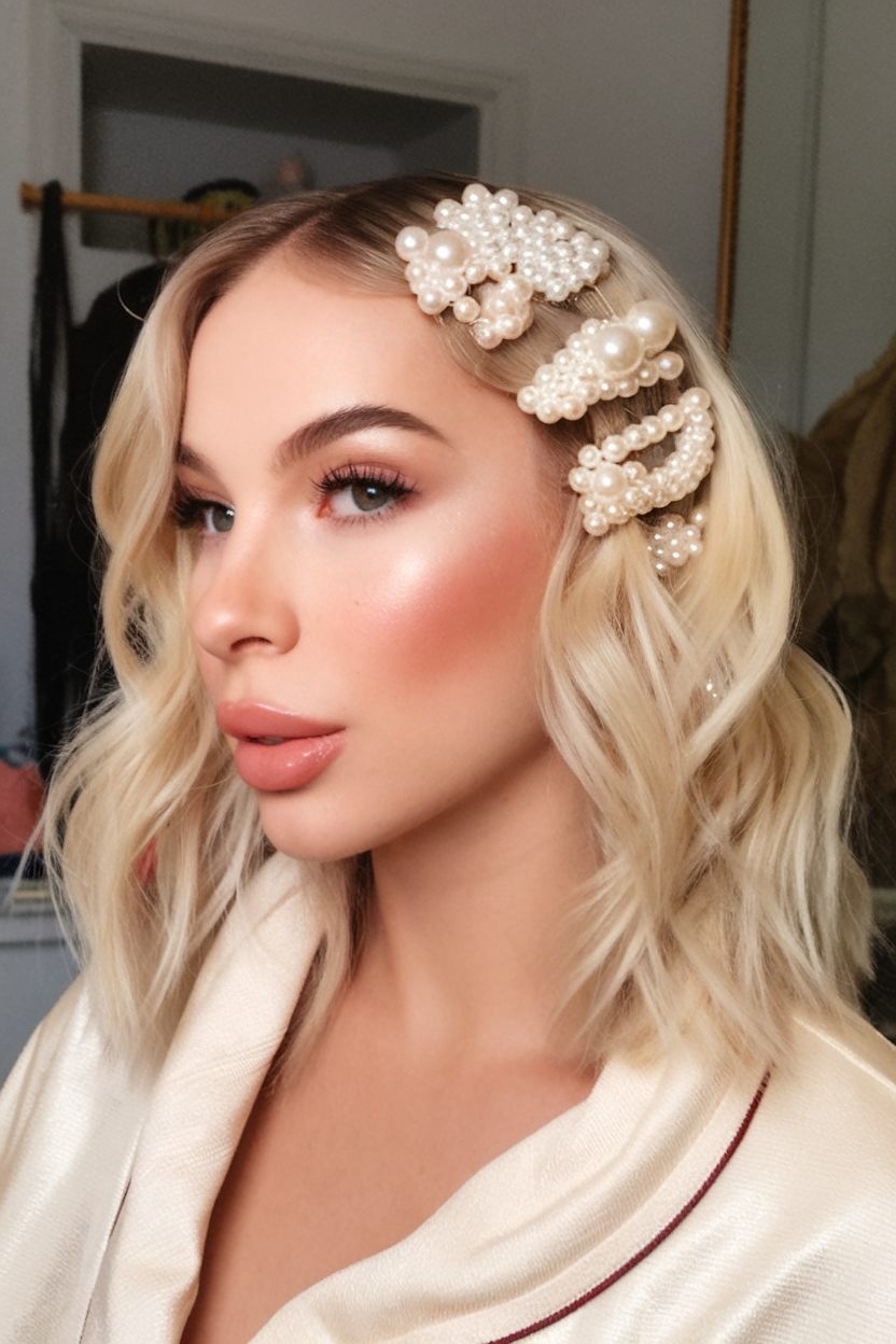#7 Chic Wavy Bob with Pearl Hair Clips