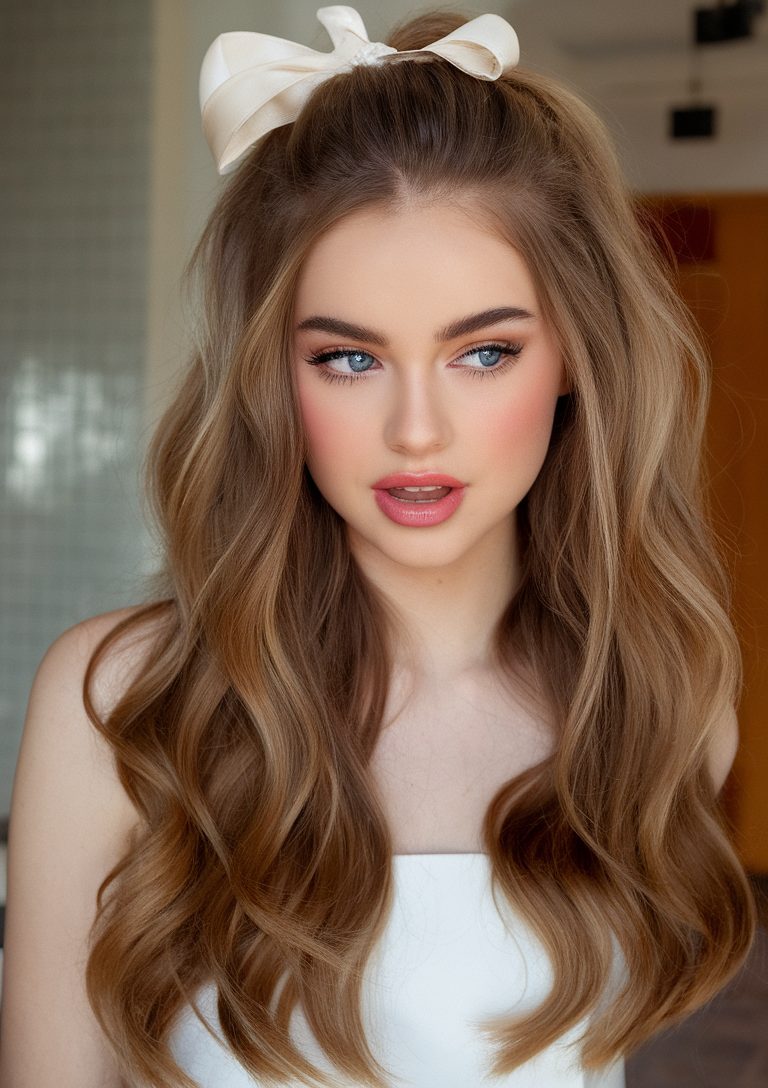 #12 Half-Up Soft Waves with Playful Ribbon Details