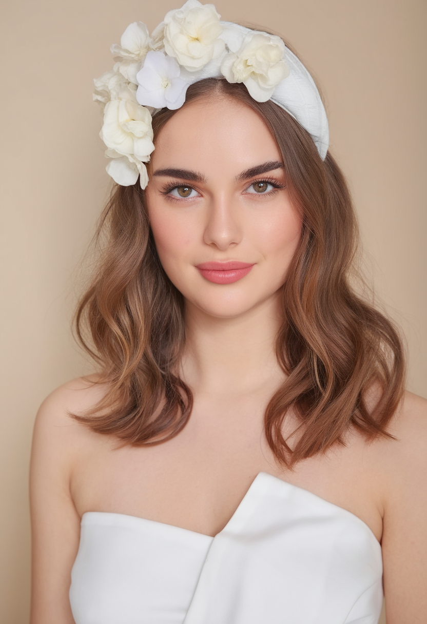 This shoulder-length wavy hairstyle is paired with a floral headband, adding a fresh and romantic element. The warm caramel brown color enhances the soft waves, creating a natural and voluminous effect. This spring quick weave is perfect for those who love a light, effortless style with a touch of elegance.