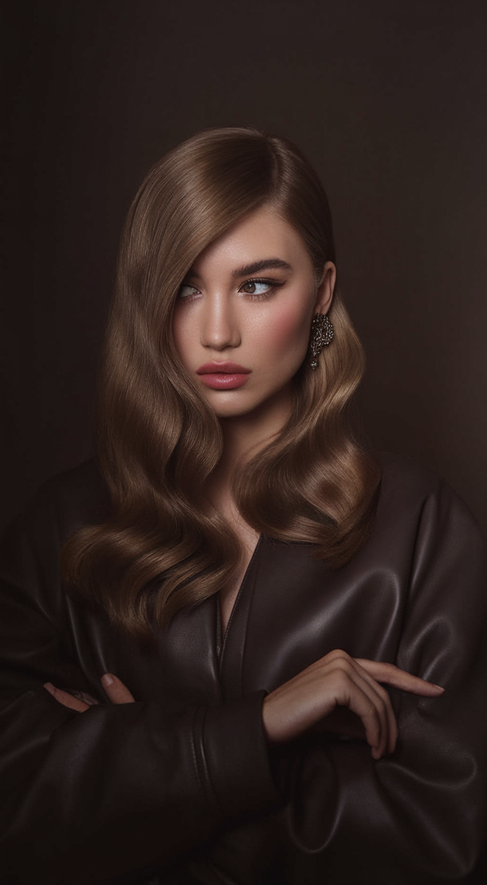 For those who love long hair, this glamorous look is a 2025 trends favorite. The luxurious golden blonde waves cascade smoothly, giving a natural hair shine and a fun yet sophisticated finish. This style works beautifully for brunettes transitioning to lighter shades, adding depth and movement. Perfect for a formal occasion, this look is all about embracing effortless beauty with long, polished curls.