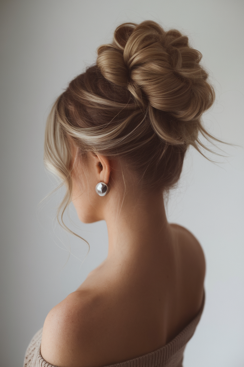 #24 Voluminous Textured Updo with Face-Framing Highlights