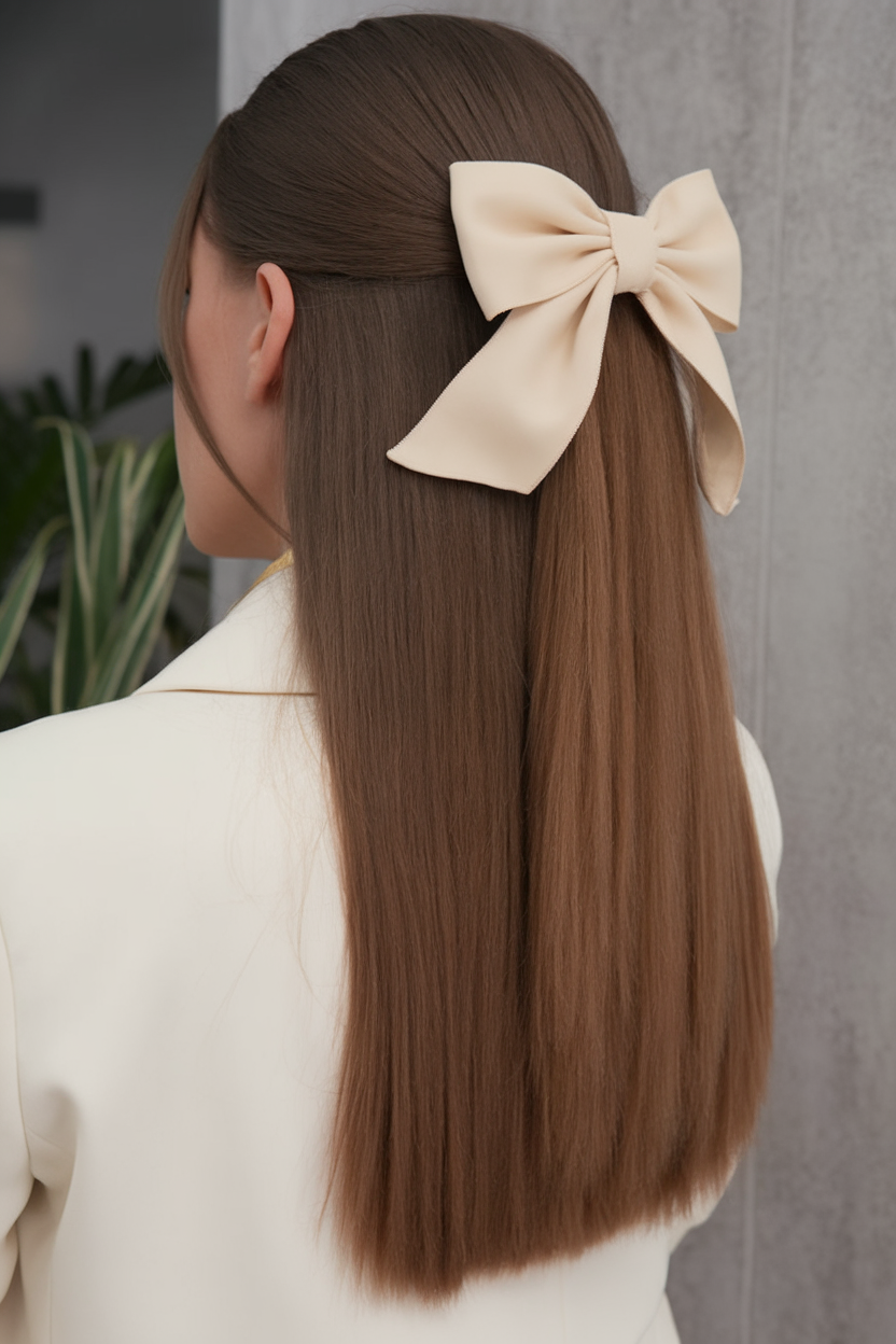 #4 Sleek Half-Up Hairstyle with a Soft Bow