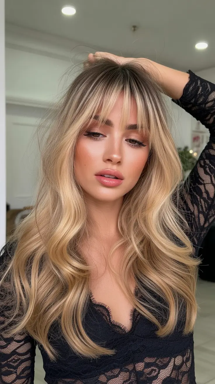 I believe that this appearance is not only cute but also versatile enough – it is just a way to have a slight change without changing your base of blonde drastically. In addition, bangs are returning on the runways and hence an understated allusion to high fashion.