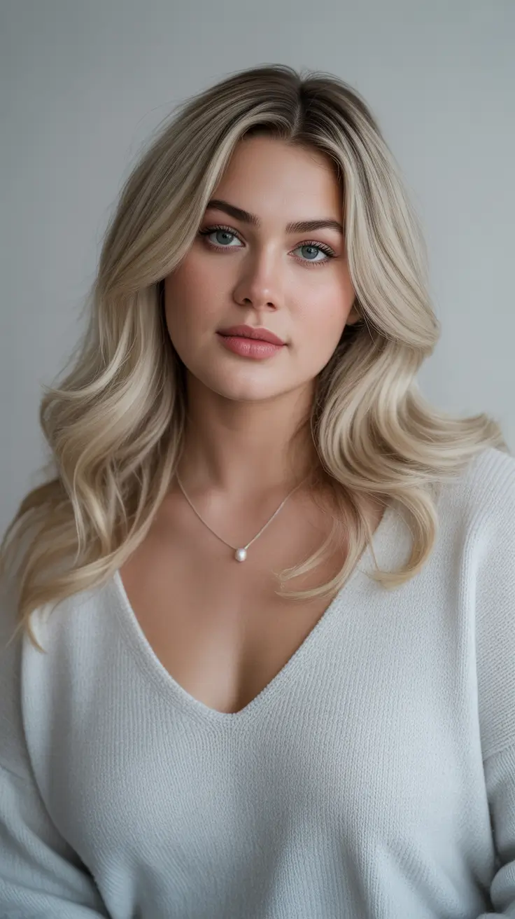 In case you want something light and at the same time dimensional, loose curls in soft beige blonde is the choice. It possesses the natural warmth that helps it perfectly with blue eyes, and neutral makeup looks when there is a winter. This tone is soft which makes the hair look in a healthy, full-bodied way – it is unobtrusive but highly polished.