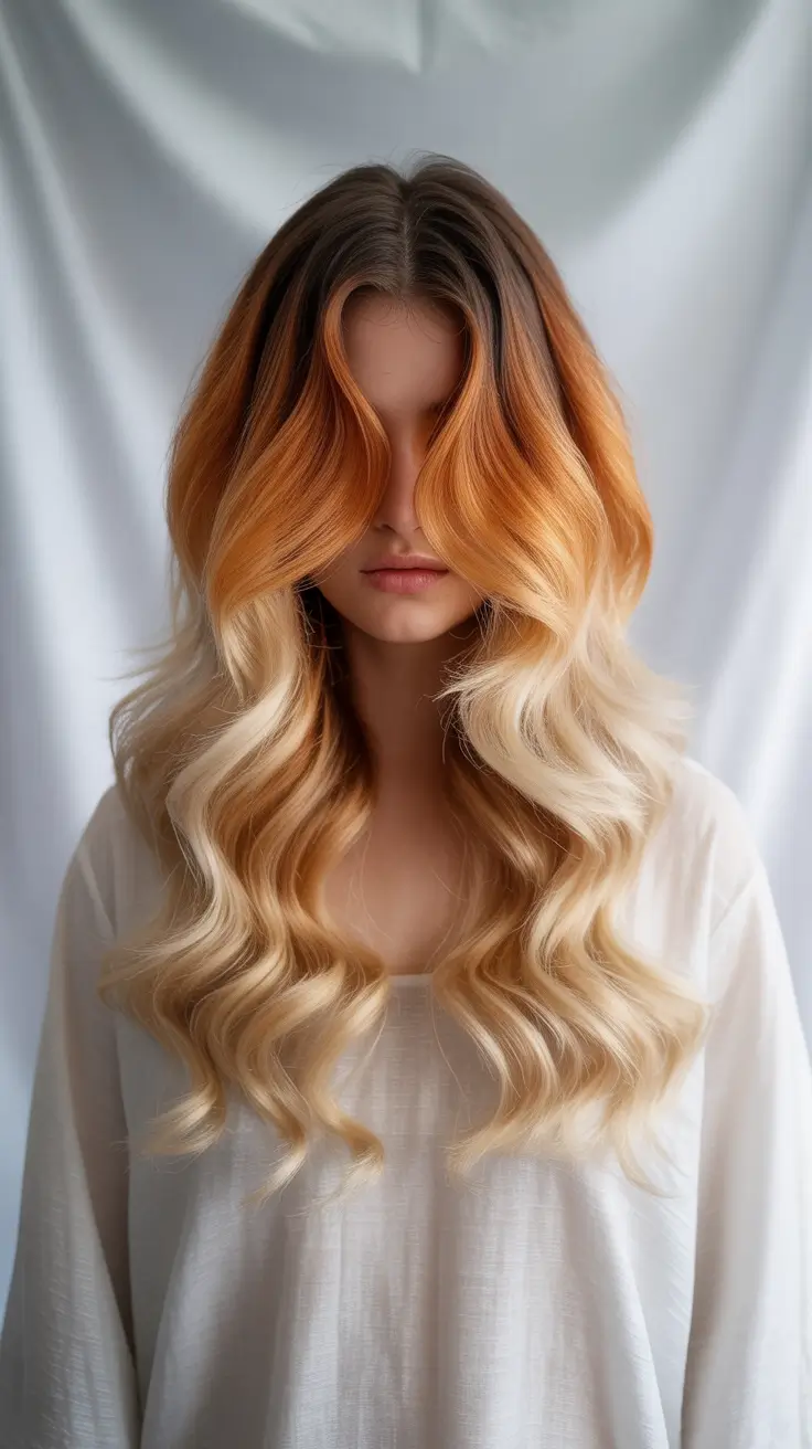 To the daring and to the brave, there can be nothing like a red-kiss blonde with a touch of red copper which fades into soft cream. It is taking the heat of a burning fire into the chilly season. This appearance is contemporary and retro at the same time because the dark roots have been transformed into orange flame and creamy blonde extensions.