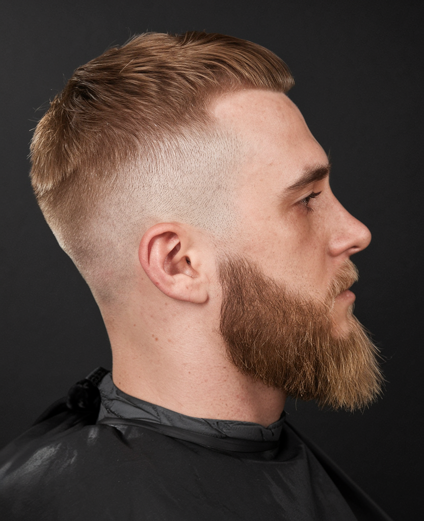 This high fade pairs perfectly with a stylish, textured top, offering a fresh and trendy look. Ideal for men who prefer a buzzed cut but still want some length on top for versatility. The clean fade adds a sharp contrast, making this a top choice for a sharp winter look.