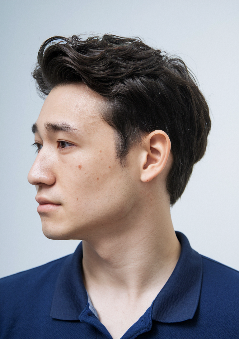 This style combines sharp features with a subtle edge. The side-swept bangs create a bit of mystery while maintaining a chiseled jawline. It’s the perfect look for someone who wants to experiment with a slightly longer style without going too wild. Pairing this with a structured jacket elevates the look into something both daring and refined.