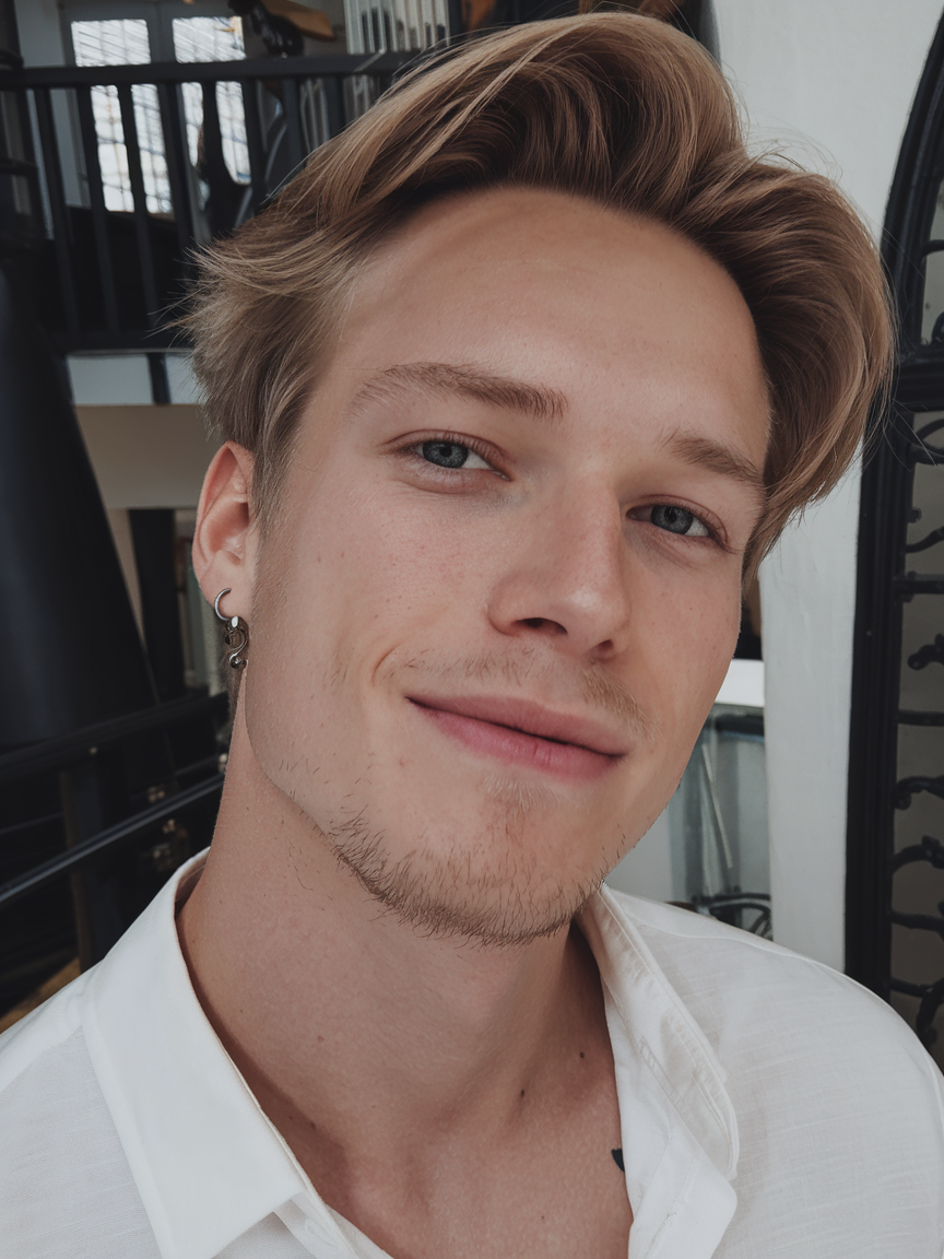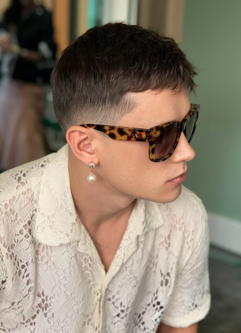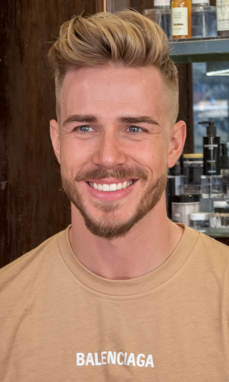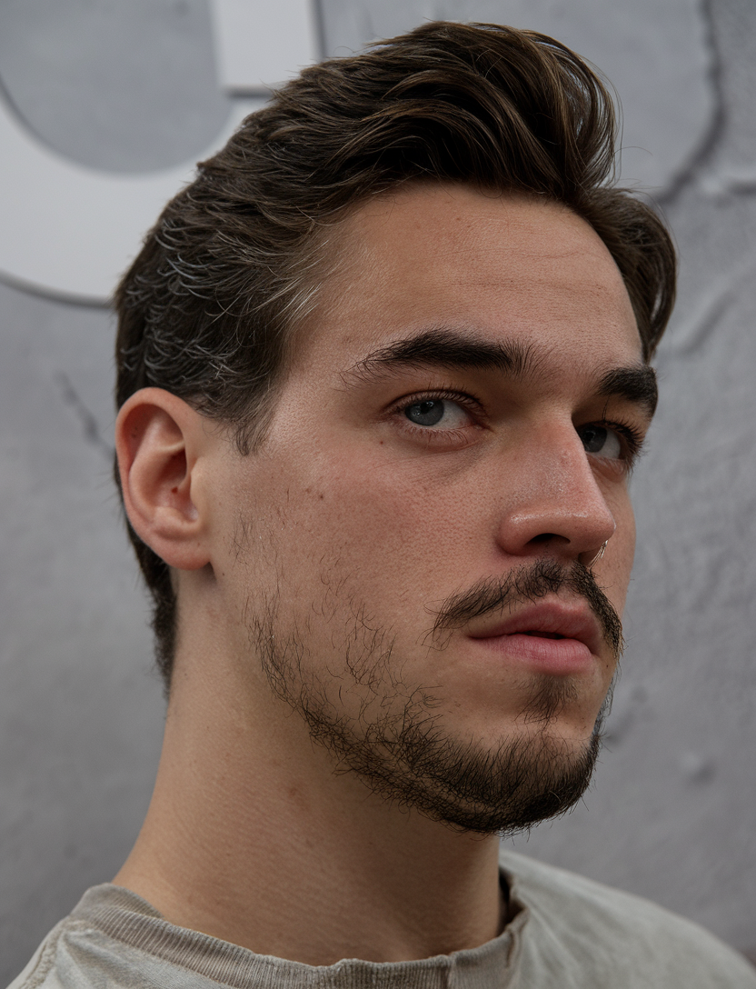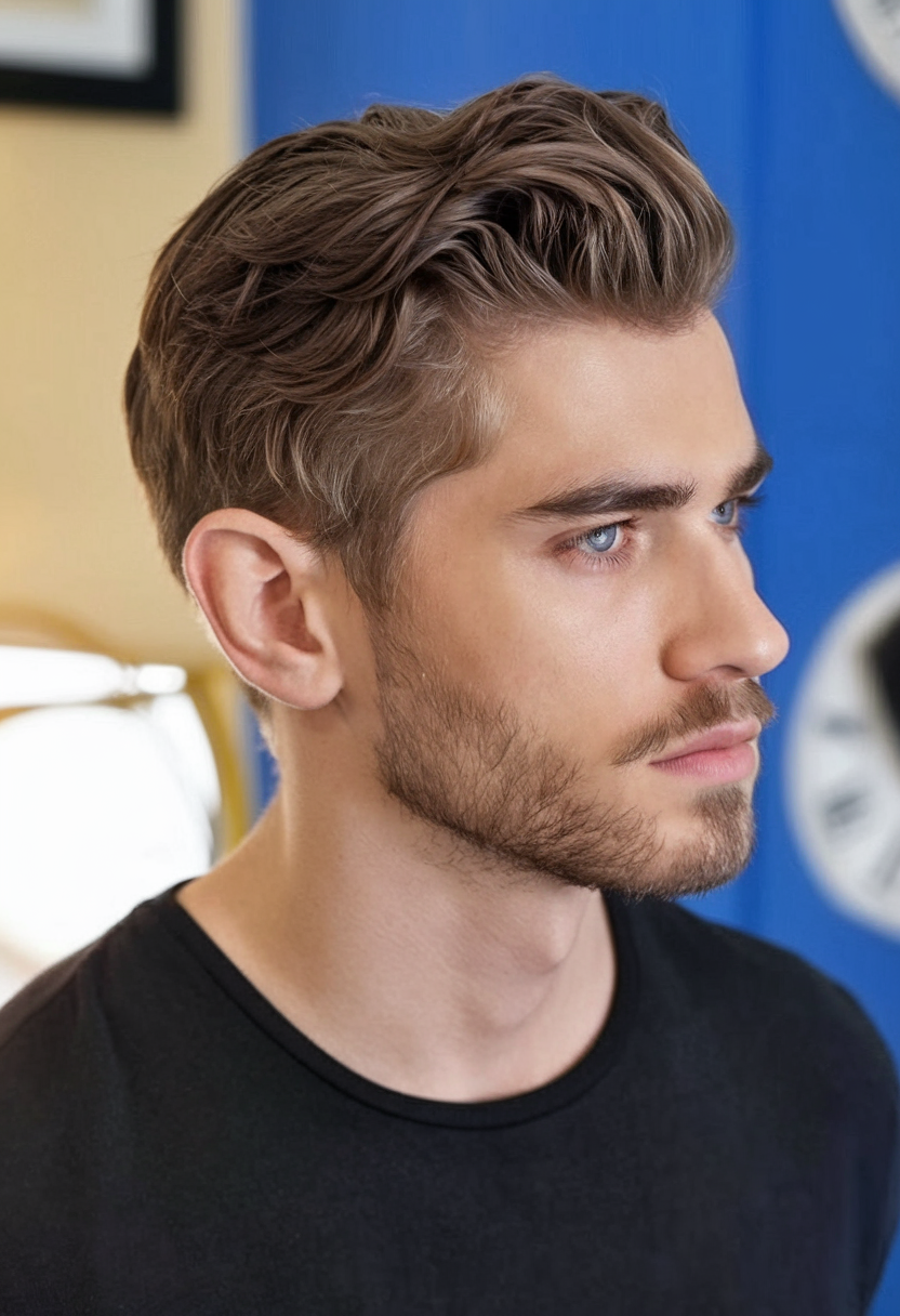 Sharp and sleek, this hairstyle is the epitome of a modern gentleman. The short sides and slightly longer top give it a structured look while the natural flow adds some charm. The subtle tousle on the top keeps it from looking too stiff. This style works wonders when combined with a crisp shirt and soft lighting, showcasing a refined, polished appearance.
