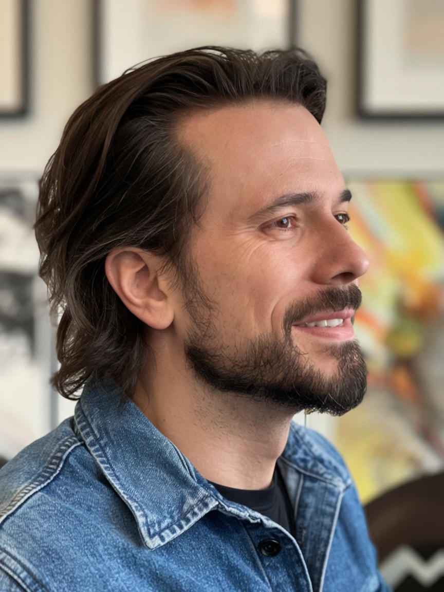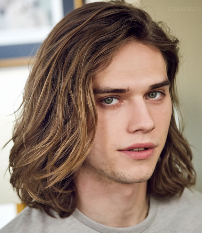 This shoulder-length look is ideal for men with medium long hair who want to show off natural texture. The soft waves add volume, while the length offers flexibility in styling. It’s a great trendy choice for those who prefer long hair without sacrificing style.