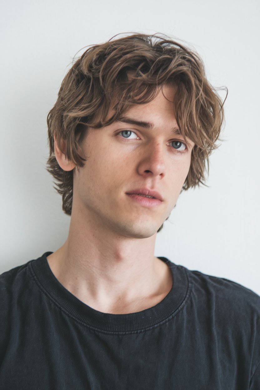 This tousled wavy hair look offers a laid-back yet stylish appearance. The soft waves give the hair a natural flow, making it a great medium length option for those who prefer a relaxed style. Perfect for men who want a trendy haircut that doesn’t require much maintenance but still looks effortlessly cool.