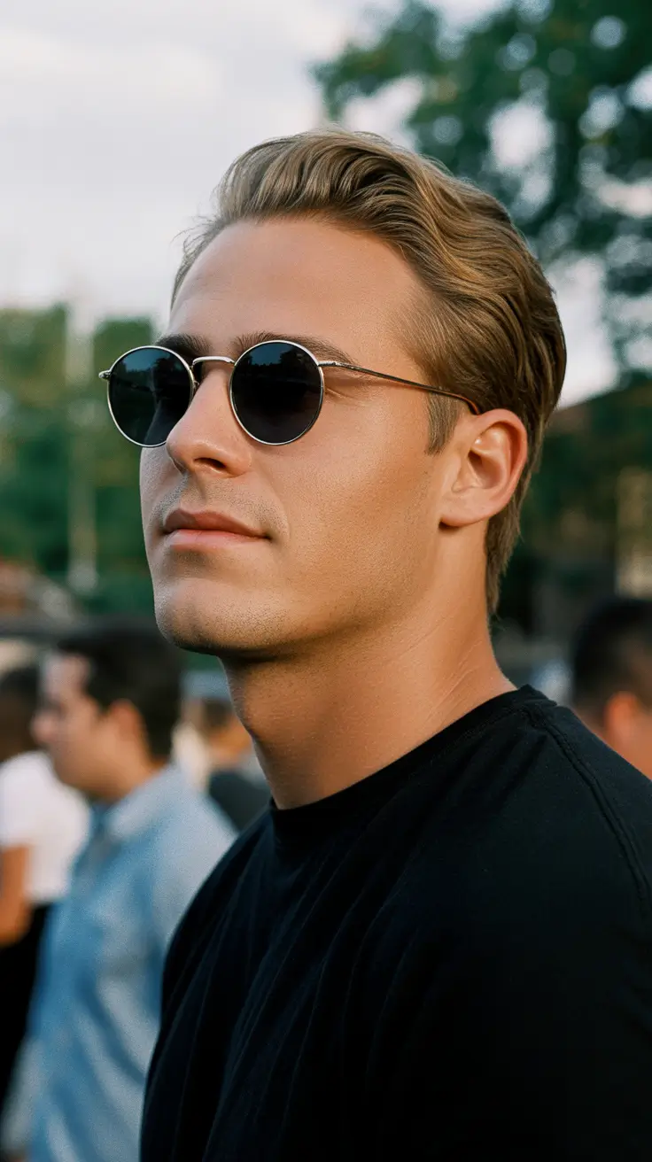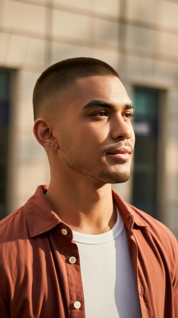 This theme is all contrast – a hard side part, undressed on top, and a crisp buzz fade along the sides. It is one of the more fashionable cuts today because it is both fashionable and comfortable. The top wears neat, straight hair, which gives it a clean, and well-tailored feel, and the faded side ensures the look is fresh and contemporary.