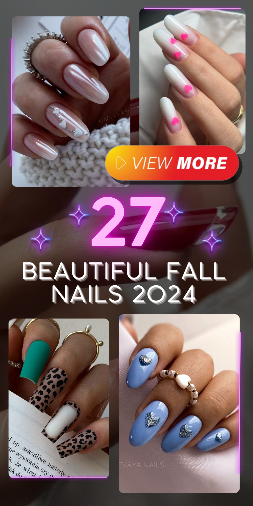 This pink ombre design with tiny heart accents exudes romance and playfulness. The smooth gradient from a soft pink to white serves as the perfect backdrop for the delicate heart-shaped embellishments, making this look both cute and charming. It’s ideal for anyone wanting to add a touch of sweetness to their fall nails.