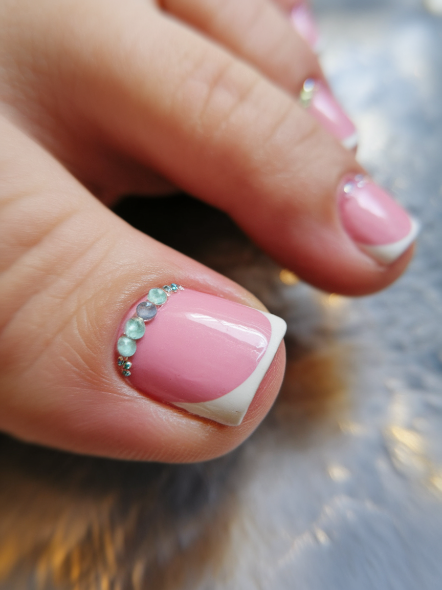 #11 French Tip with Rhinestone Embellishments
