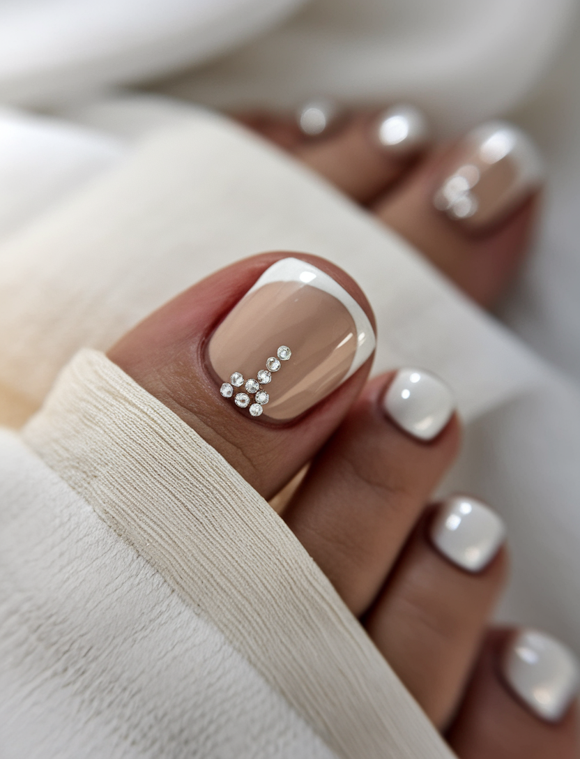 #18 Classic White French Tip with Rhinestones