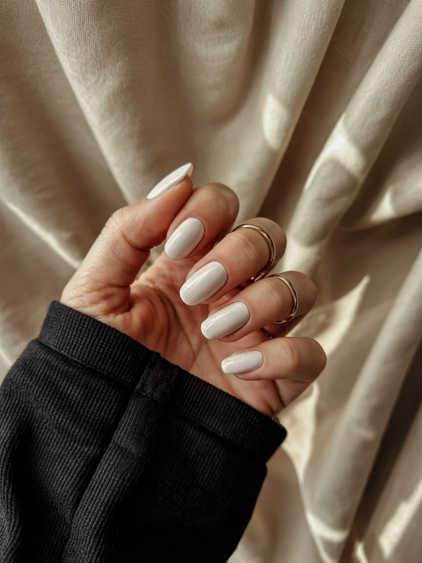 The design showcases the 2025 Almond White polish shape in a clean, solid creamy white application over all nails. The glossy finish showcases monochromatic colors in an elegant and minimalist way. The refined nail design is a perfect representation of the simple trends of 2025, as it appeals to people who appreciate modern and clean aesthetics. The style will remain a classic choice that will be fashionable for any spring occasion.