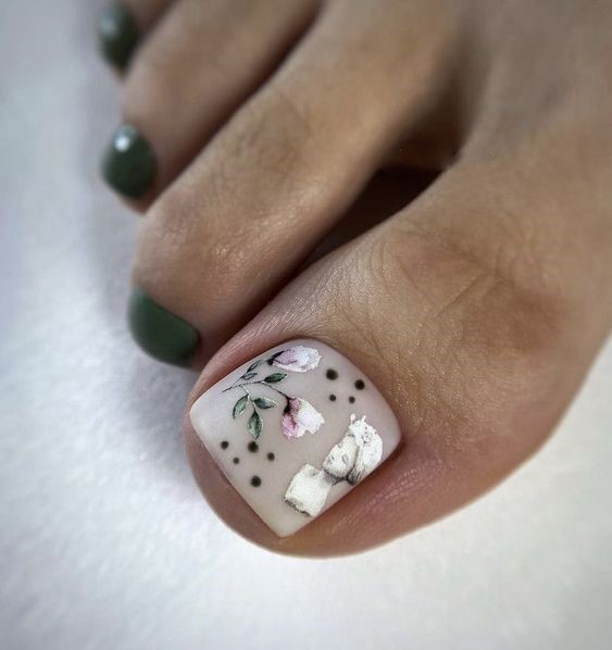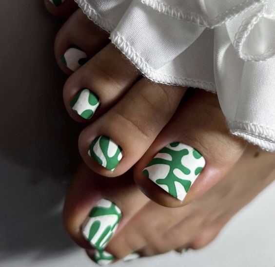 Unleash your inner jungle goddess with this pedicure that takes a leaf out of nature’s book. The white and green contrast creates a fresh and bright look, great for tan skin and those looking for ideas that are both fun and popular. It’s like a tropical holiday, right at your feet.