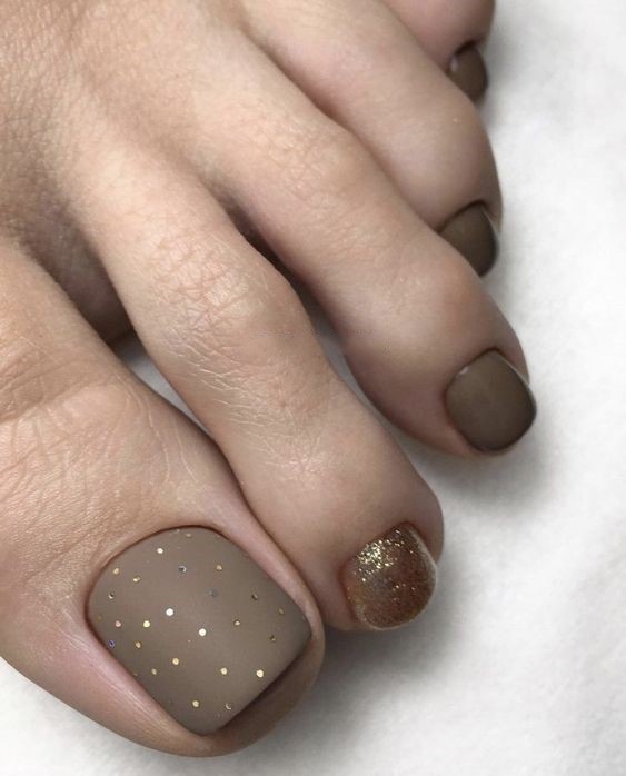 Sometimes, less is more, and this neutral taupe pedicure with subtle gold flecks is the epitome of understated elegance. It’s a versatile choice that works well with pale skin or tan skin, making it popular for its ability to match a variety of outfits, from classy dinner dresses to casual beach wear.