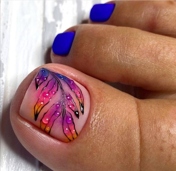 Fluttering onto the scene are these whimsical butterfly wing-inspired nails. They’re a playful mix of bright, bold colors with a dash of enchantment. This design pedicure bright is perfect for light skin tones, adding a pop of color that is both whimsical and stylish. Imagine these paired with a flowing maxi dress as you walk down a boardwalk; they’re not just a fashion statement, they’re a mood lifter.