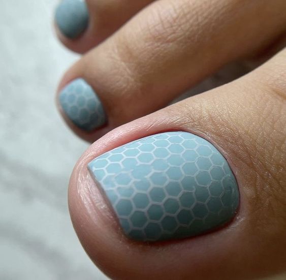 For the woman who loves to merge sophistication with trendsetting, these geometric patterned nails are a geometric dream. The subtle pastel blue is a soothing contrast to the intricate honeycomb design, making it a popular pick for tan skin ladies. This neutral yet intricate design is perfect for those late summer evenings when the sky echoes the same hues as your pedicures.