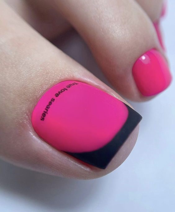 Make no mistake, bright pink is here to stay and it’s louder than ever. This pedicures hot pink shade is the epitome of a summer toe nail color 2024, tailored for the bold and the beautiful. The stark contrast of the black tip adds a modern twist to the otherwise feminine color, making it an assertive style statement. It’s the ideal choice for a beach outing or a casual brunch with friends – versatile and unapologetically vibrant.