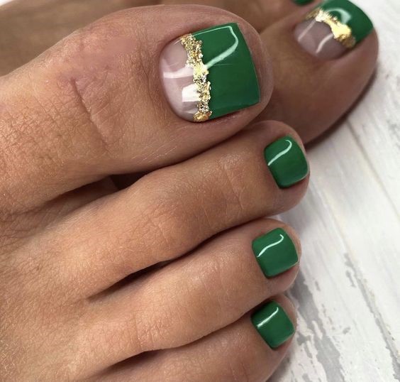 The allure of emerald has long captivated us, and this summer toe nail color 2024 is no exception. Adorned with a shimmering silver gradient at the tips, this pedicure is a nod to the opulent jewels that grace the display windows of the most exclusive boutiques. It’s a classy choice for dark skin tones, providing a beautiful contrast that is both eye-catching and elegant. Whether paired with gladiator sandals or peep-toe heels, these toenails are sure to be the centerpiece of your vacation ensemble.