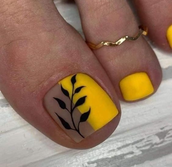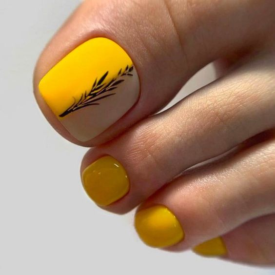 This summer toe nail color 2024 is a zesty take on summer fun. Bright, neon yellow sets a lively backdrop for delicate black and white floral art, making a statement that’s both bold and elegant. A wonderful choice for light skin, it’s like wearing a slice of sunshine on your toes, perfect for brightening up any beach or vacation outfit.