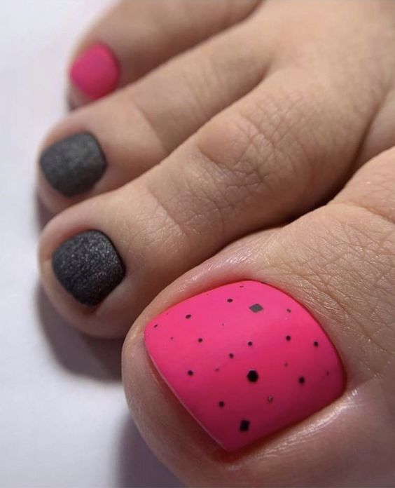 Make no mistake, bright pink is here to stay and it’s louder than ever. This pedicures hot pink shade is the epitome of a summer toe nail color 2024, tailored for the bold and the beautiful. The stark contrast of the black tip adds a modern twist to the otherwise feminine color, making it an assertive style statement. It’s the ideal choice for a beach outing or a casual brunch with friends – versatile and unapologetically vibrant.