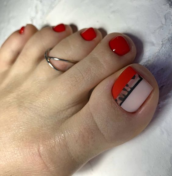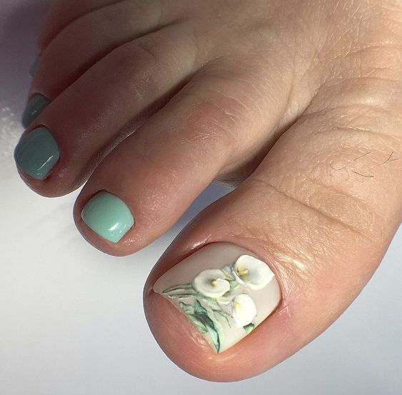 Unleash your inner jungle goddess with this pedicure that takes a leaf out of nature’s book. The white and green contrast creates a fresh and bright look, great for tan skin and those looking for ideas that are both fun and popular. It’s like a tropical holiday, right at your feet.
