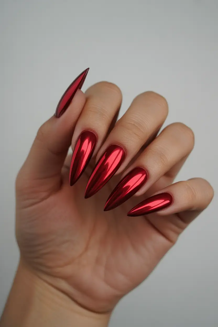 A mirrored red chrome nail is an instant mood. The finish mirrors every light spark, so your hands own the room. For Fall 2025, the look takes a confident turn, mirroring the runways where reflective finishes ruled accessories and beauty.
