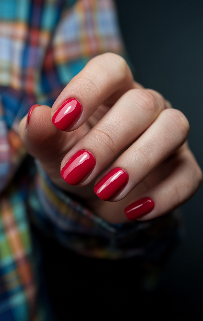 This spring short almond manicure features a timeless red shade with a sleek, glossy finish. The simple short acrylic design enhances the natural curve of the nails, making it a perfect blend of elegance and practicality. The bold red hue is a statement choice for spring 2025, complementing a variety of styles. A must-have look for those who love a chic yet minimal aesthetic.