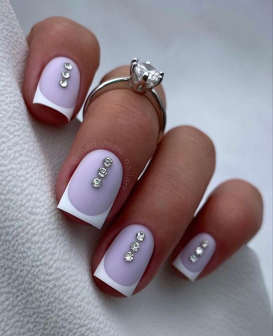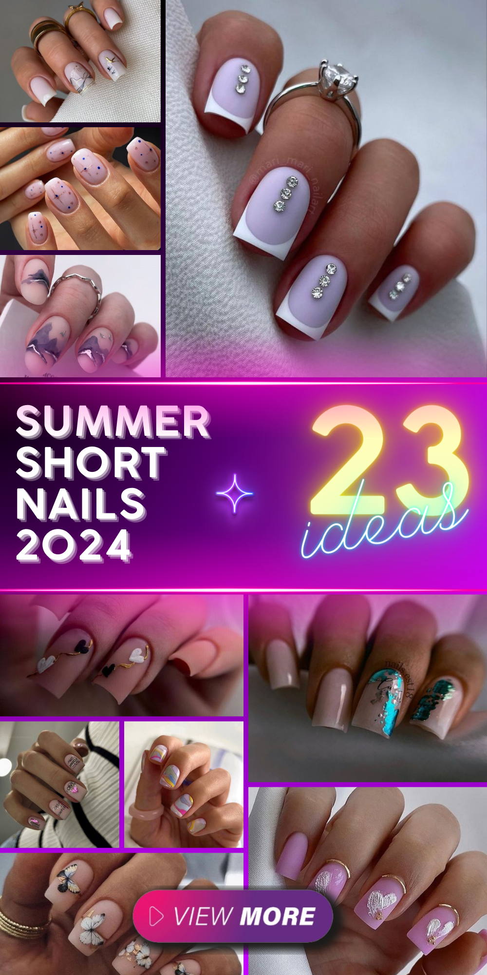 This year, the subtle elegance of pink and white gradations takes center stage, as seen in the tender lavender hues that promise a simple, yet sophisticated look. Each nail is a canvas displaying a soft ombre effect, crowned with delicate crystal accents that catch the summer light. These gel short nails are perfect for a weekend brunch or a stroll along the beach, reflecting both the 2024 color trends and the inspiration drawn from serene summer skies.
