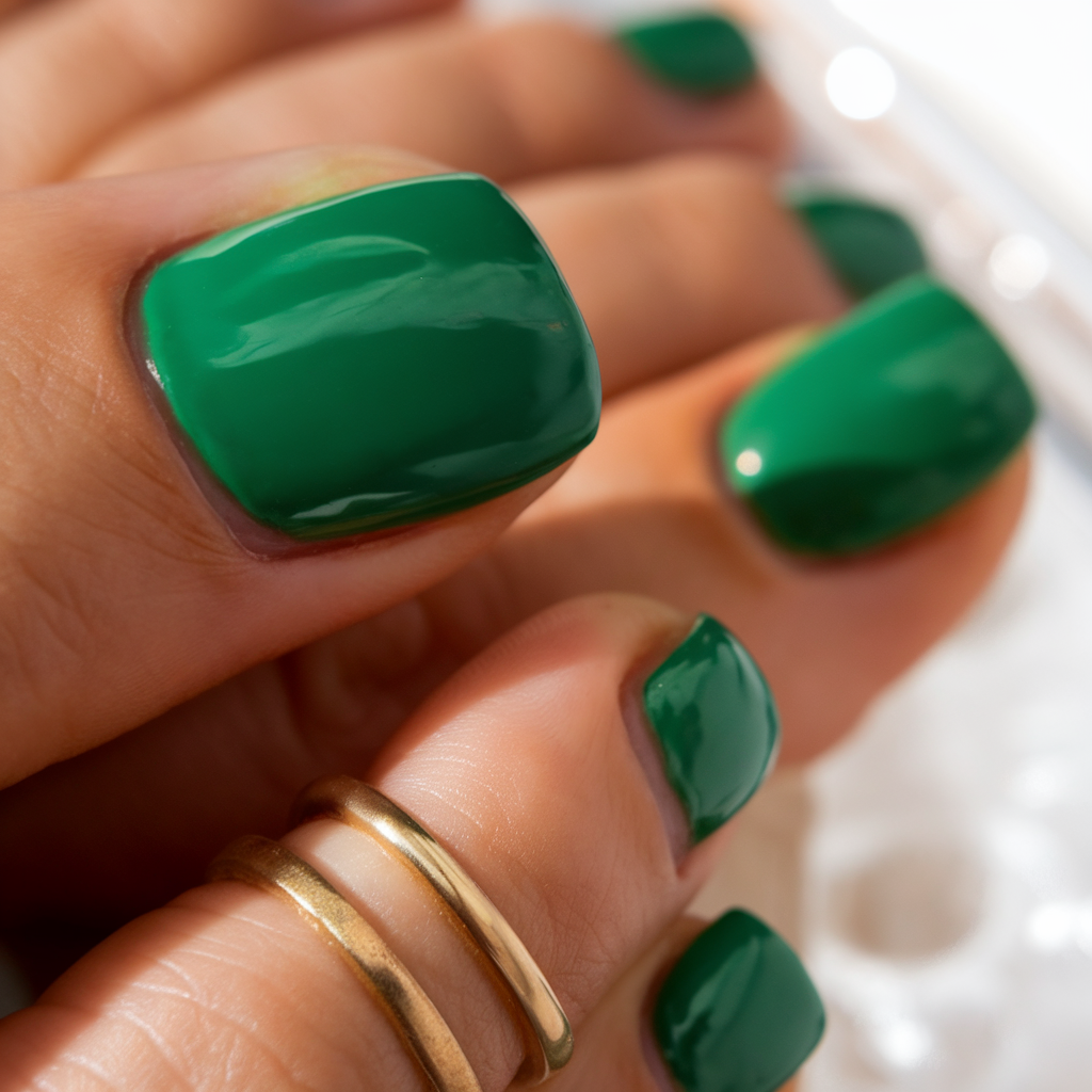 A deep, rich green makes this pedicure a bold and elegant choice for colors pedicures 2025. The glossy finish enhances the vibrancy of the polish colors, creating a luxurious and modern look. Green is a standout color trend this season, perfect for those who want to make a fresh and confident statement. Whether in gel or acrylic, this color combo pairs beautifully with gold accessories for a chic effect.