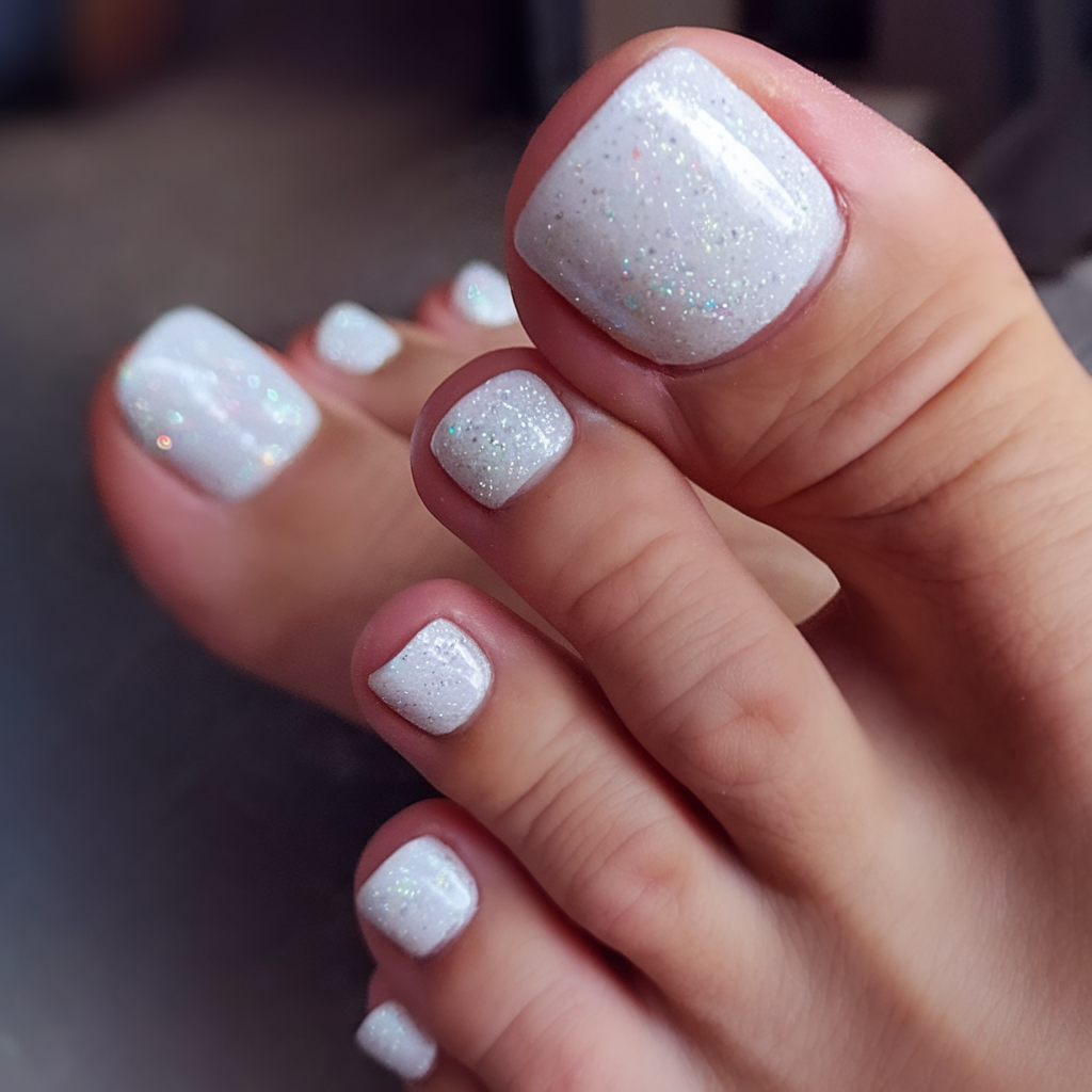 #25 Glittery White Polish for a Chic Neutral Pedicure