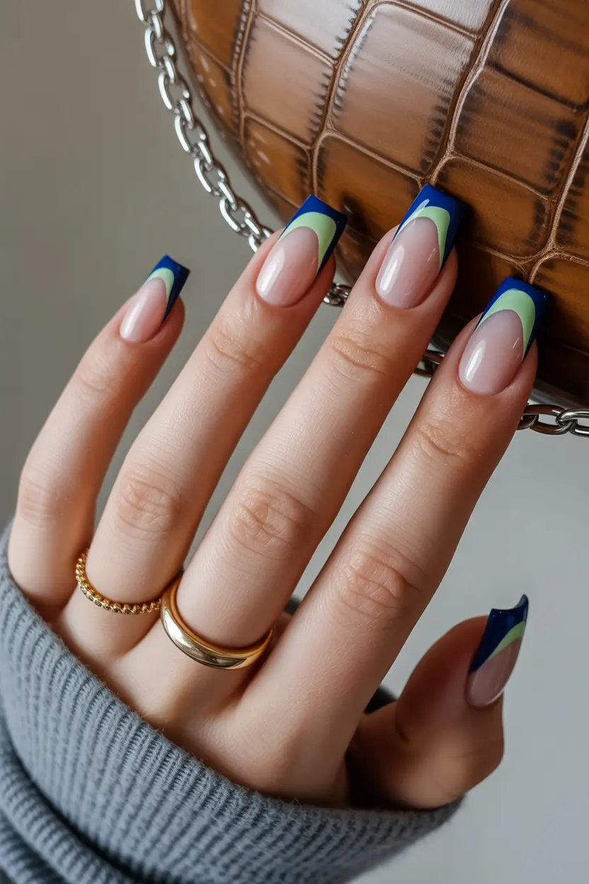 Graphic Double French Tips in Blue and Green