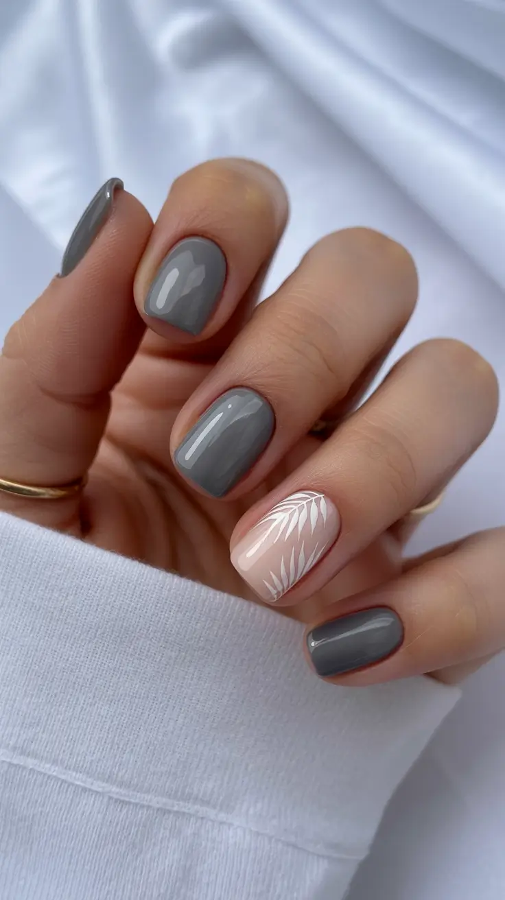 Gray might not sound like a spring vacation color at first, but hear me out. When paired with soft nude accents and delicate white detailing, it becomes incredibly chic. The glossy gray polish feels clean and contemporary, while the accent nail adds just enough softness to keep the manicure seasonal rather than wintery. Short square nails make the entire look polished but effortless.