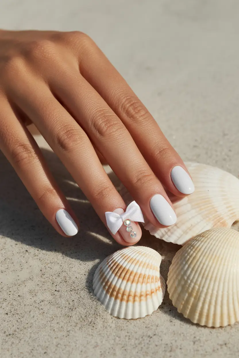Minimal White Beach Nails with a Playful Detail