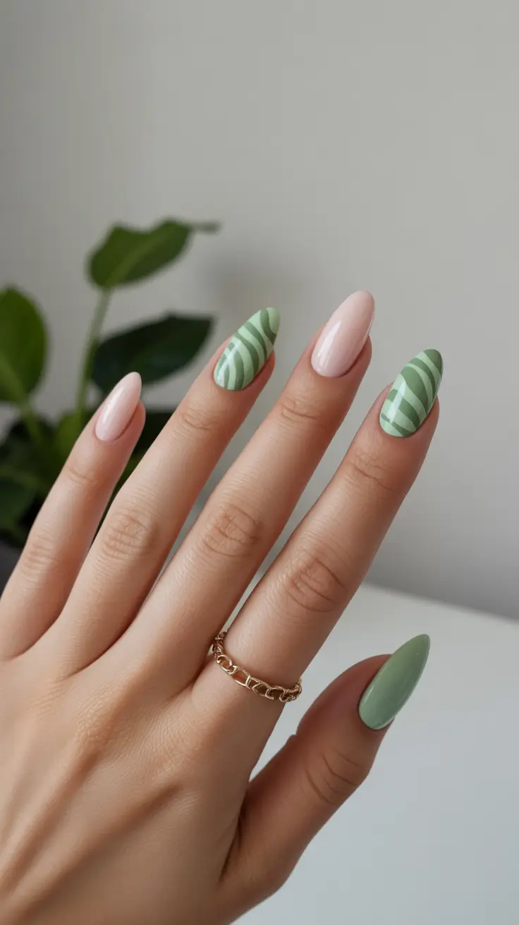 Fresh Green Almond Nails with Soft Spring Energy