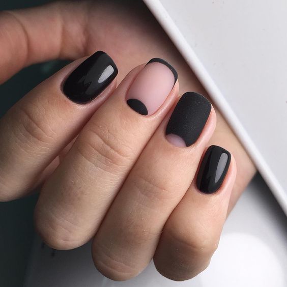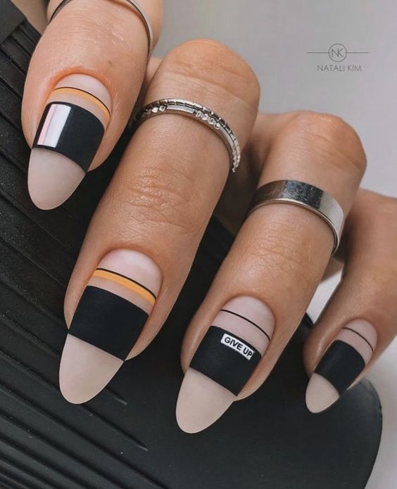 Geometry takes a chic turn with these nails that blend black, pink, and matte finishes into a trendy trifecta. The simple yet sophisticated design is a testament to the power of clean lines and solid colors, making a statement without overwhelming. These nails are a match made in heaven for the modern woman’s office attire or a simple, elegant beach dress, allowing for versatility and style.