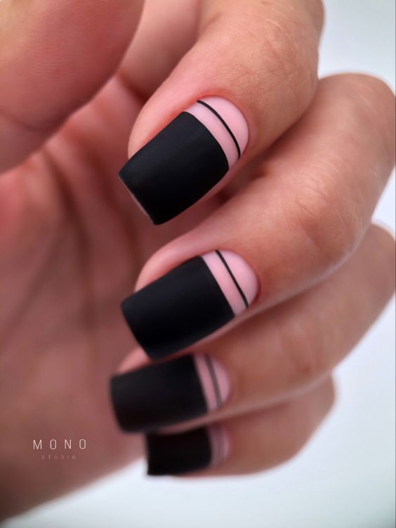 This design is a masterpiece of minimalist beauty, combining matte black with delicate pink lines. It speaks volumes of the trendy woman who adores simple, clean lines but still wants a touch of femininity. These nails are perfect for a sophisticated, understated look that can go from day to night. They’re especially suited for professional settings where you want to make a statement without being over the top.